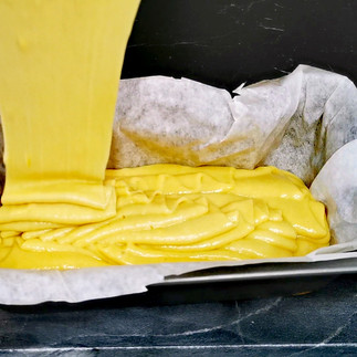 Aluatul obținut îl turnăm în forma de chec, pe care o tapetăm cu foaie de copt.